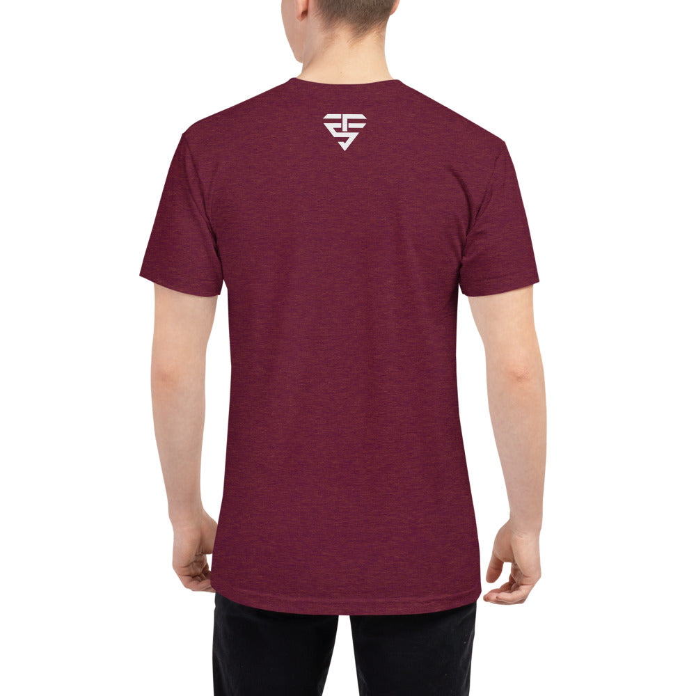 Enjoy a brand new crew neck track shirt with a fit, feel and durability of a well-loved vintage piece. This tri-blend track t-shirt is made from a mix of polyester, cotton and rayon, which gives it a unique texture. The fabric also makes sure that the shirt is elastic and retains shape, is durable, yet comfy, and drapes against the body creating a slimmer look.